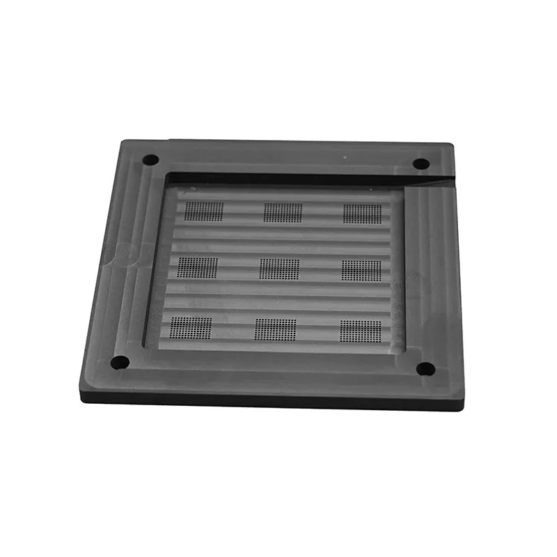 Графит високе чистоће је топлотно проводљив и отпоран на корозију, обезбеђујући стабилност димензија током лемљења на високој температури и спречава штетну контаминацију јонима. Специјални површински третмани гарантују одличну квашење куглицама за лемљење, избегавајући контаминацију оксидацијом.